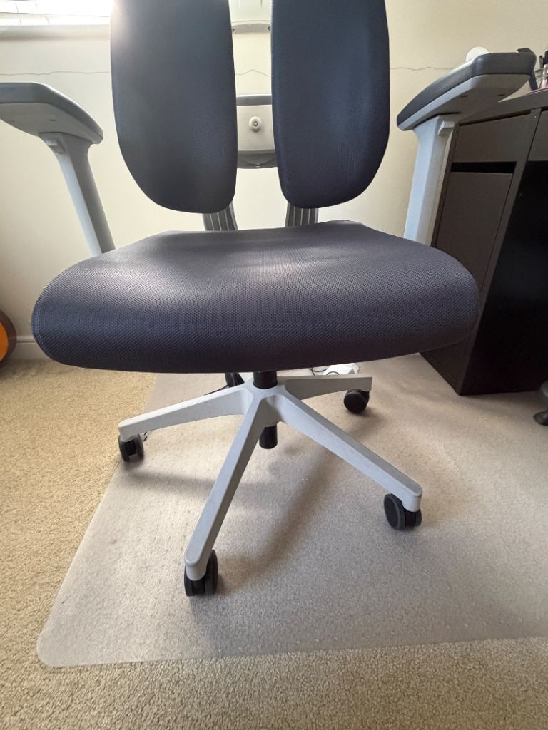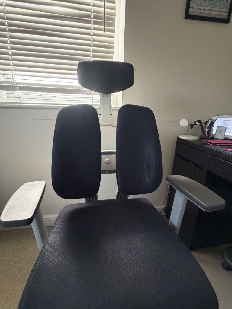 This grey ergonomic office chair is a year old but in excellent condition. It’s very comfortable and gives good support to the back and neck.
