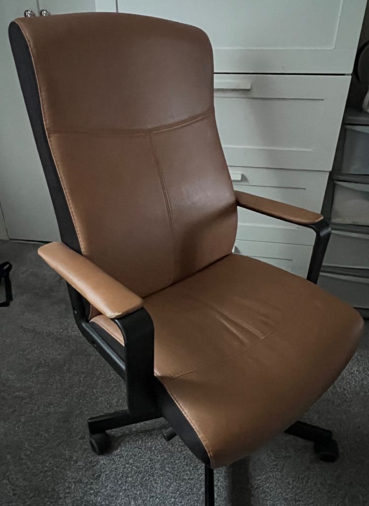 Little wear and tear on the seat and arm, cheap to repair with leather patch repair kit from Amazon around £5-£10