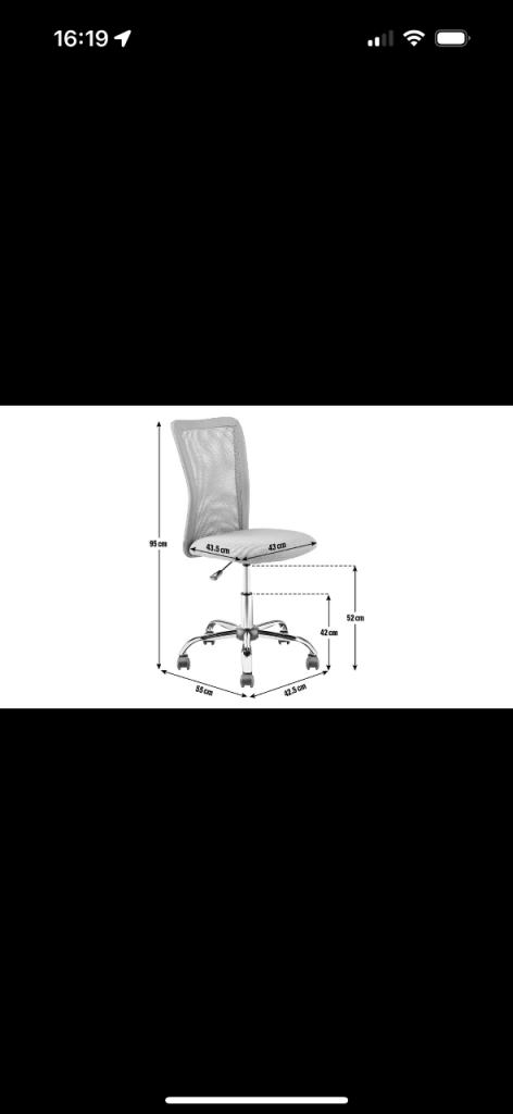Overall maximum chair size H95, W42.5, D55cm.