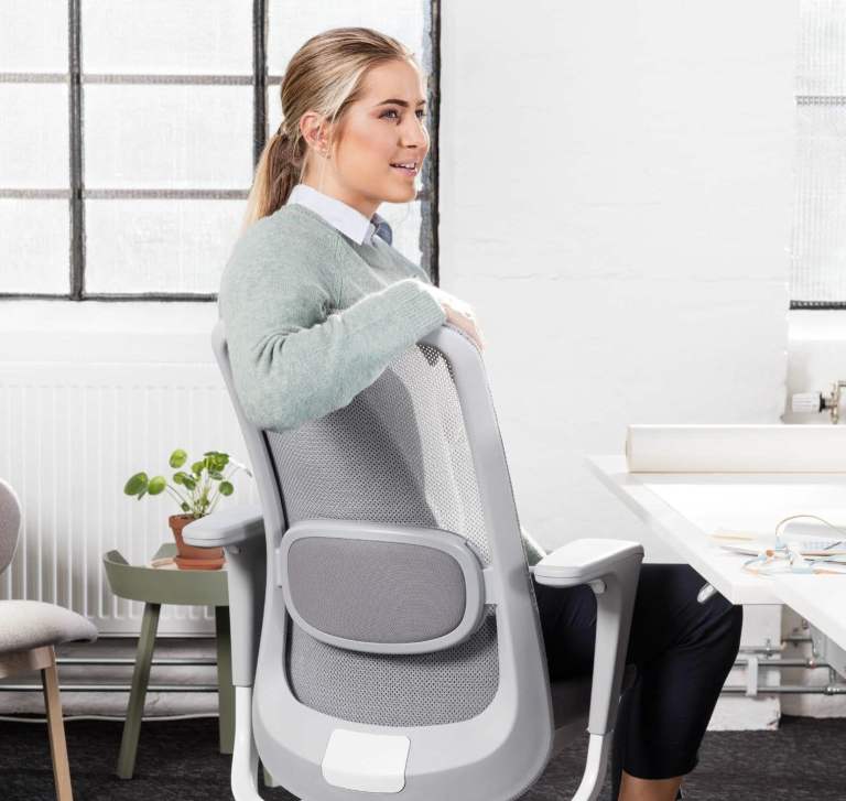 Breathable mesh back with adjustable lumbar support that matches seat fabric