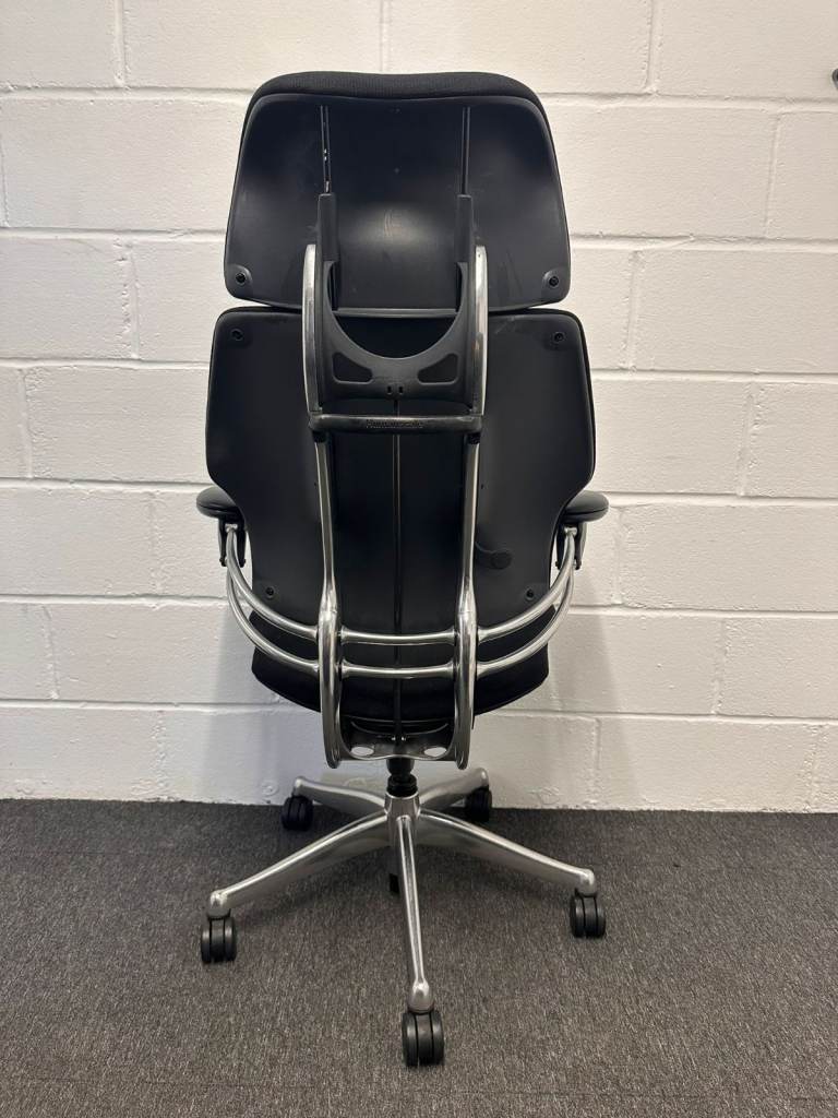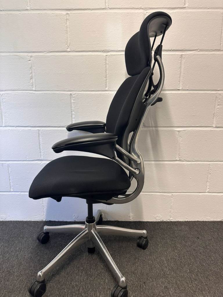 Humanscale Freedom office chair in black mesh.