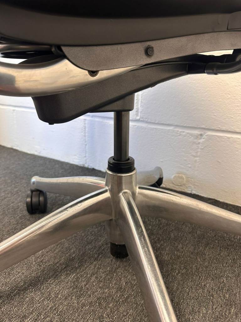 High-end ergonomic chair with self-adjusting recline and polished aluminium frame.