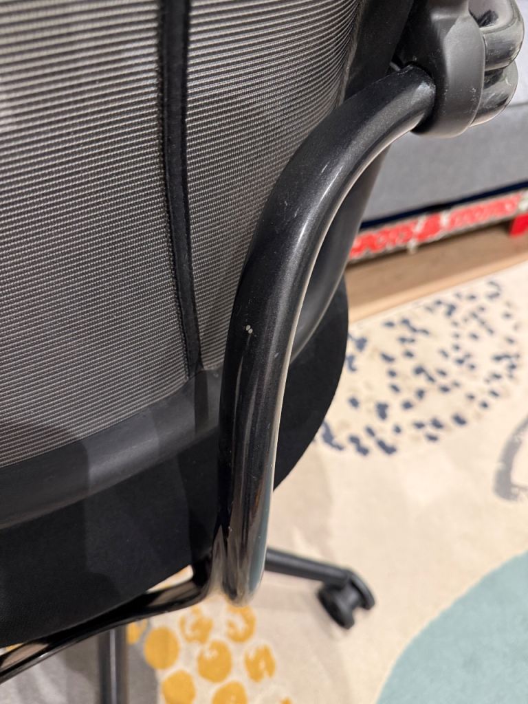 Used condition with some paint chip on the frame as shown the in the pictures but chair is very comfy.