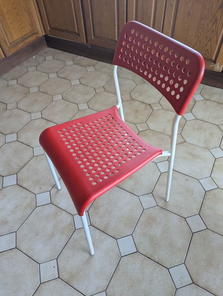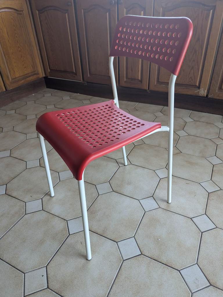 Add a pop of color to any room with this IKEA ADDE chair in vibrant red. It's in excellent, hardly used condition, making it a perfect extra seat or a stylish addition to a desk or dining area.