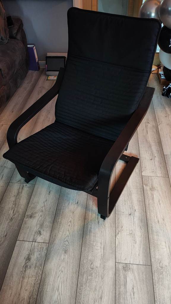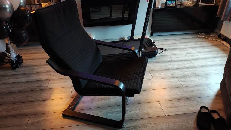 IKEA chair, black frame with black ribbed cushion base, these can be changed for other designs from IKEA store. Very comfortable and relaxing to sit on, footstool can be added from IKEA store. From a smoke and pet free home. Looking for £30