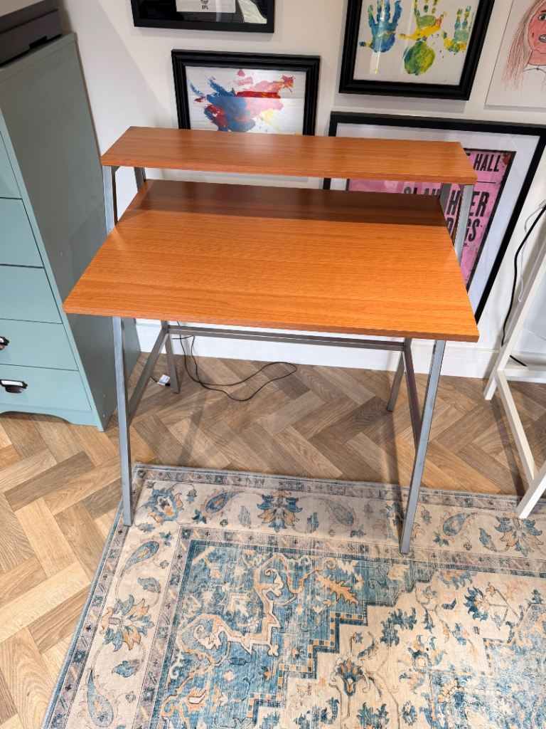 Height adjustable, with armrests and foot rest, in excellent condition.