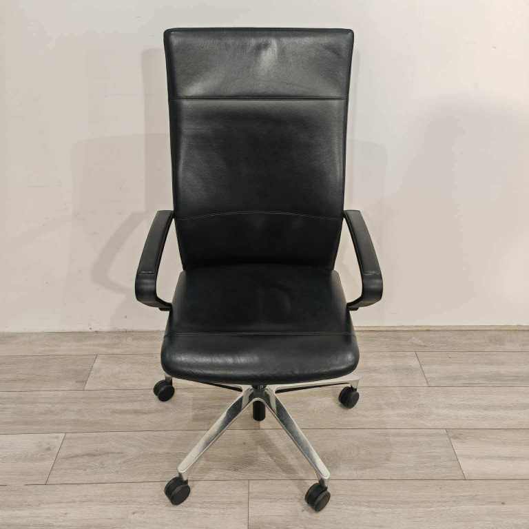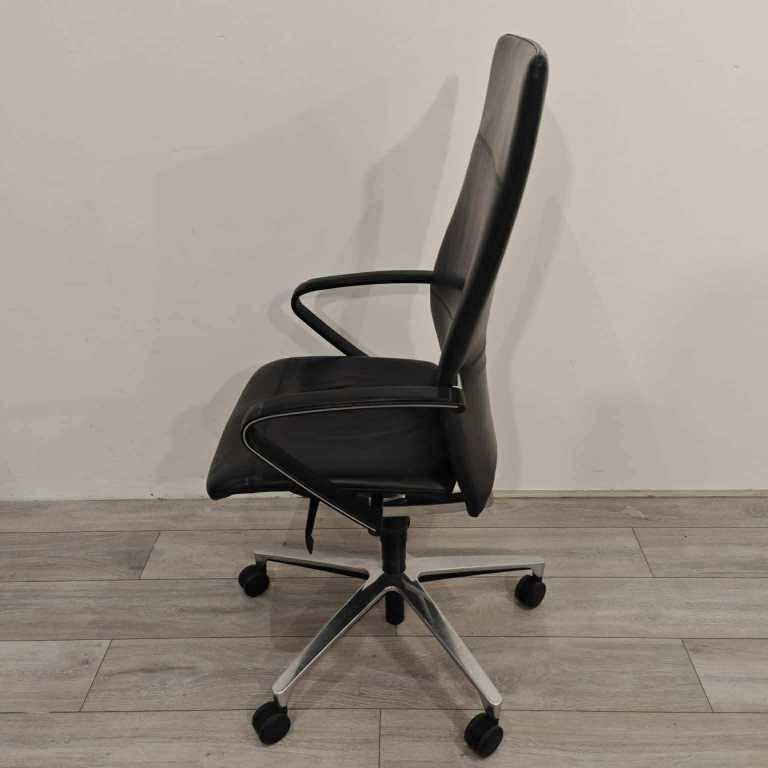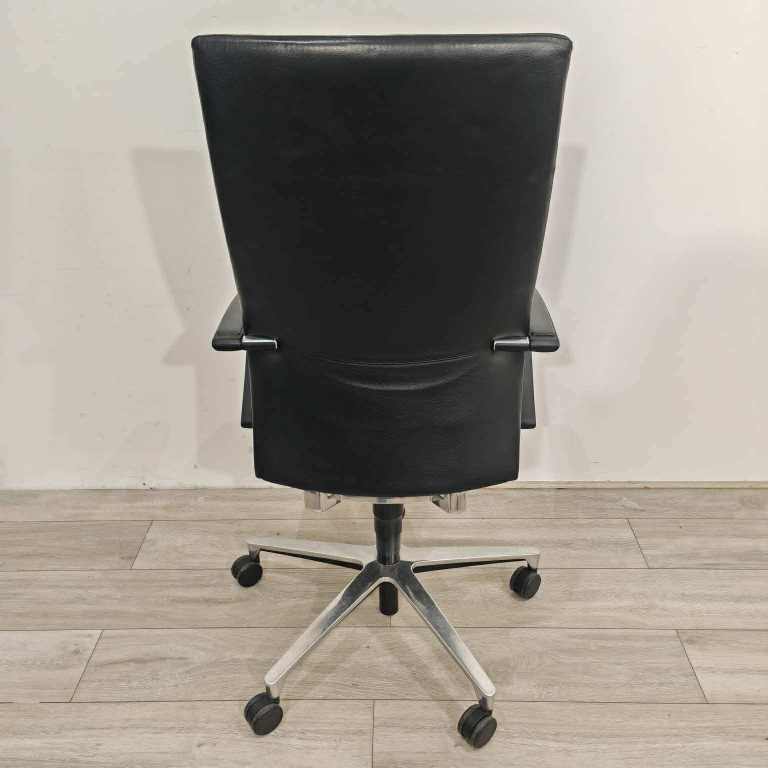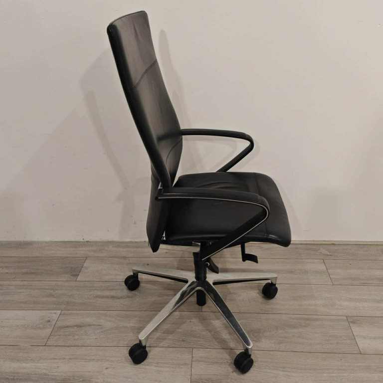 Real Black Leather, height adjustable with tilt lock.