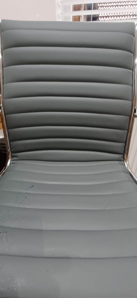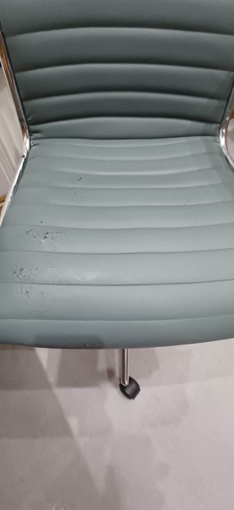 Stylish office chair featuring a leather look seat and contemporary metal base. Some wear on the seat (as seen in the photos) but otherwise in good condition. Perfect if you are looking for a cheap but fully functioning chair. Bought new from M&S for £199.