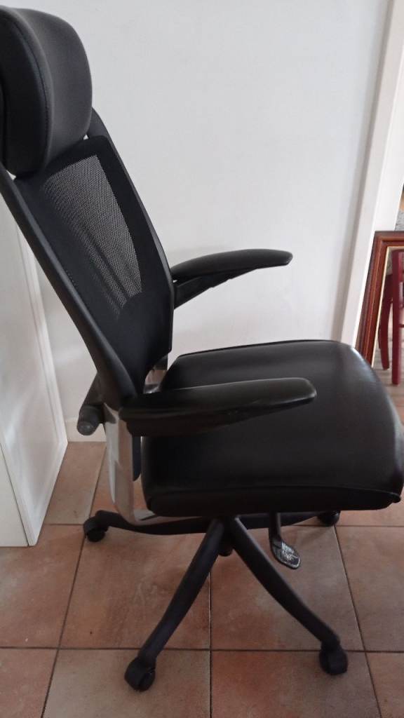 A very sold high-quality ergonomic black leather office chair, perfect for working from home or upgrading your office setup.