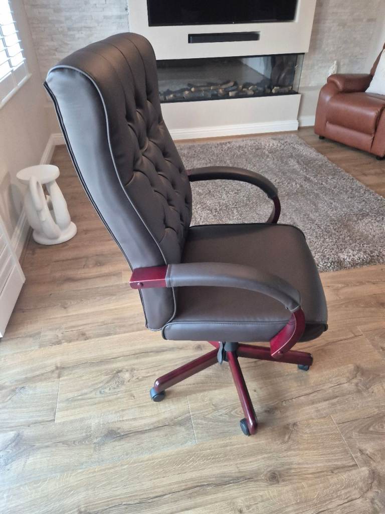 The Warwick is a bonded leather executive office chair ideal for use in any executive office space or home office. The Warwick is brown bonded leather with a dark mahogany finish base. It is suitable for 8 hour daily usage and has a maximum weight capacity of 18 stone. As well as this, the Warwick boasts a traditional style button tufted backrest, colour matching armrest covers, seat height adjustment via gas lift and a reclining function with tilt tension.