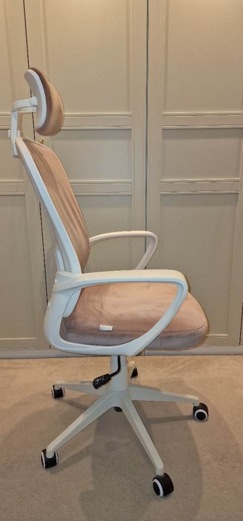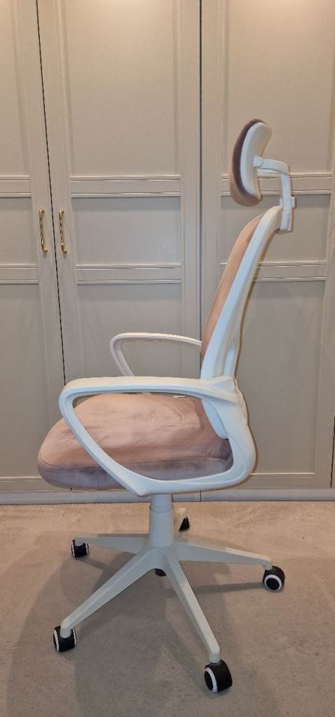 A beautiful dusty pink office chair with great back and neck support (adjustable). Used but in very good condition.