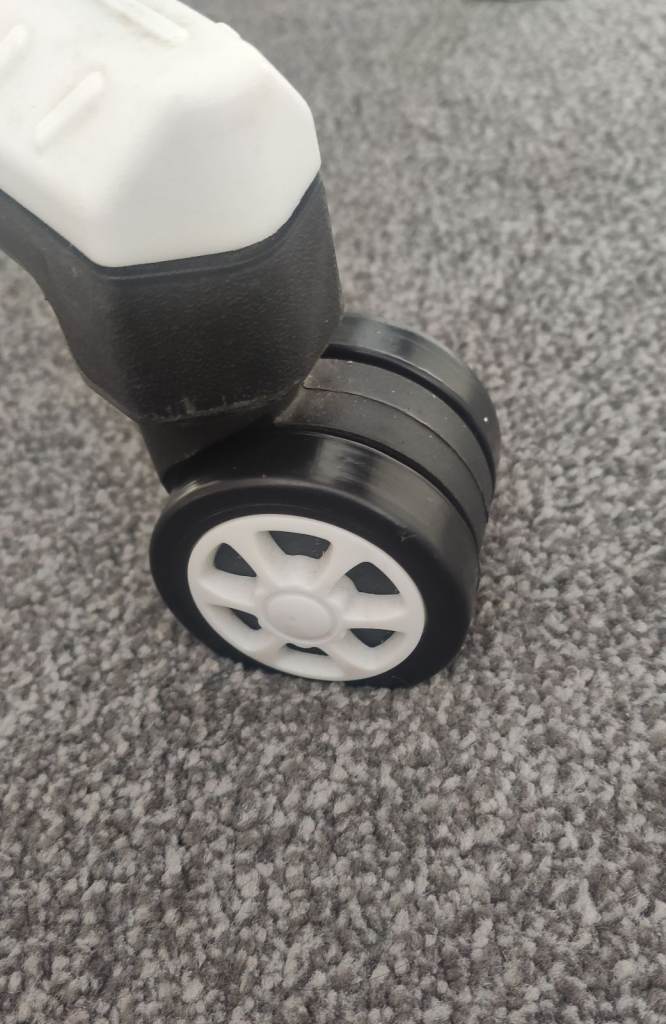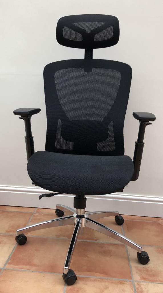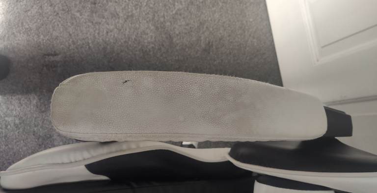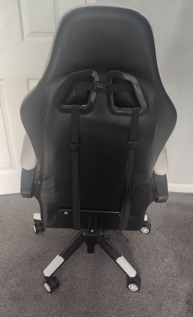 Comfortable faux leather office/gaming chair in decent condition. There’s some discolouration on the faux leather from use, but no tears or rips. The chair does go up and down, but it doesn’t stay at the chosen height (slowly sinks when sat on). All wheels are in good working order and roll smoothly.