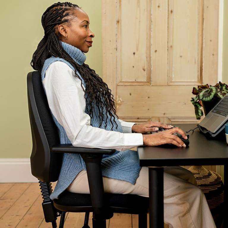 The Homeworker Ergonomic Office Chair features intuitive adjustments that make it easy to set the right height and positioning - helping you align your feet, knees, and hips correctly to stay comfortable and focused throughout the day.
