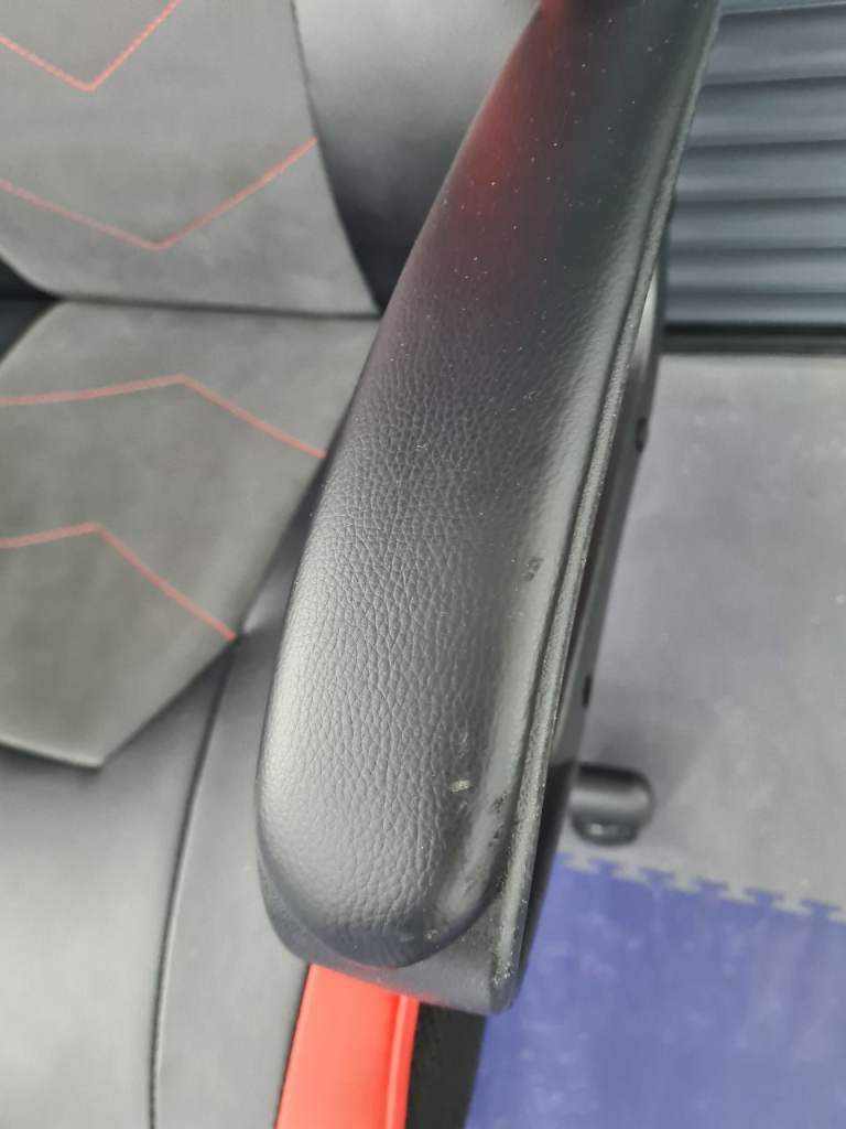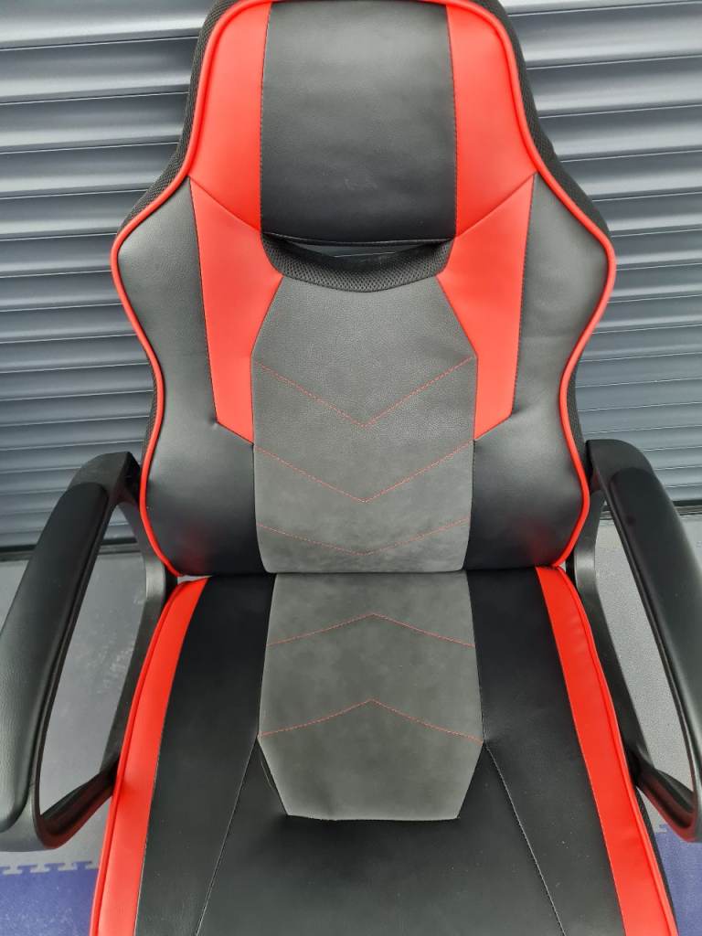Red and black gaming chair hardly used. Couple of minor scuffs on the arms as shown. £20.
