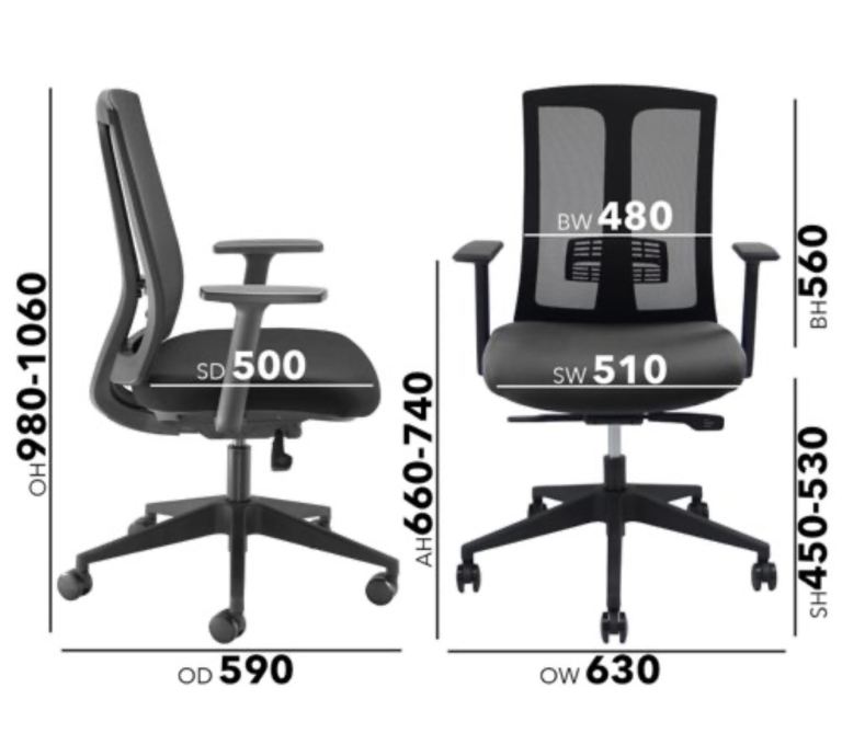 Ronan mesh back operators chair with fixed arms - black RON300T1-K by Dams