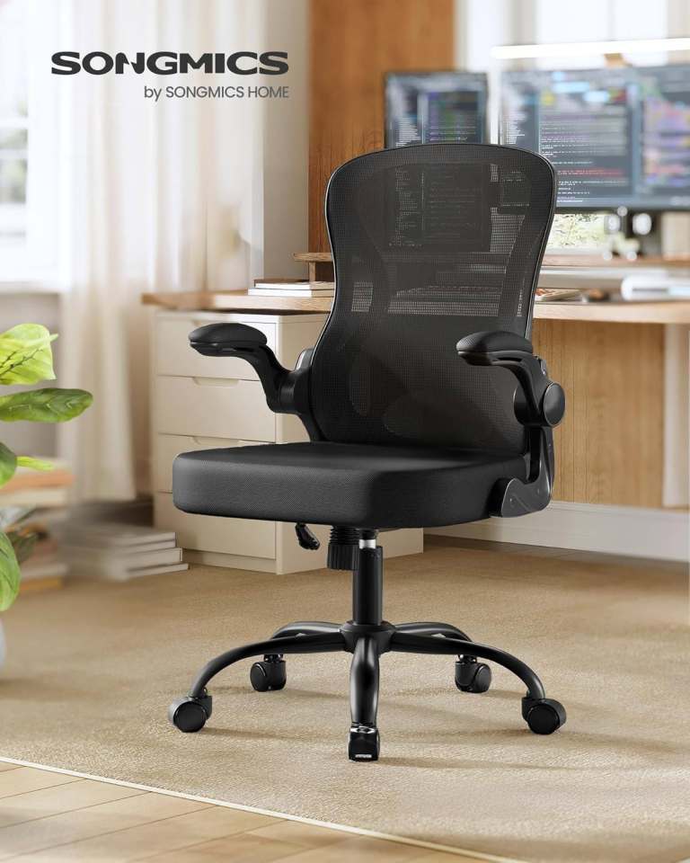 SONGMICS Ergonomic Office Chair for sale **boxed*** bought in error/........ Mesh Swivel Desk Chair with Lumbar Support, Rocking Function, Flip-Up Armrests, for Home Office, Bedroom, Black OBN042BH03