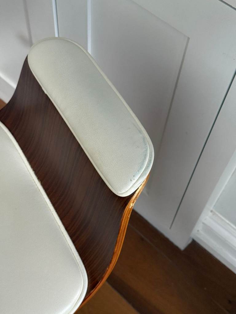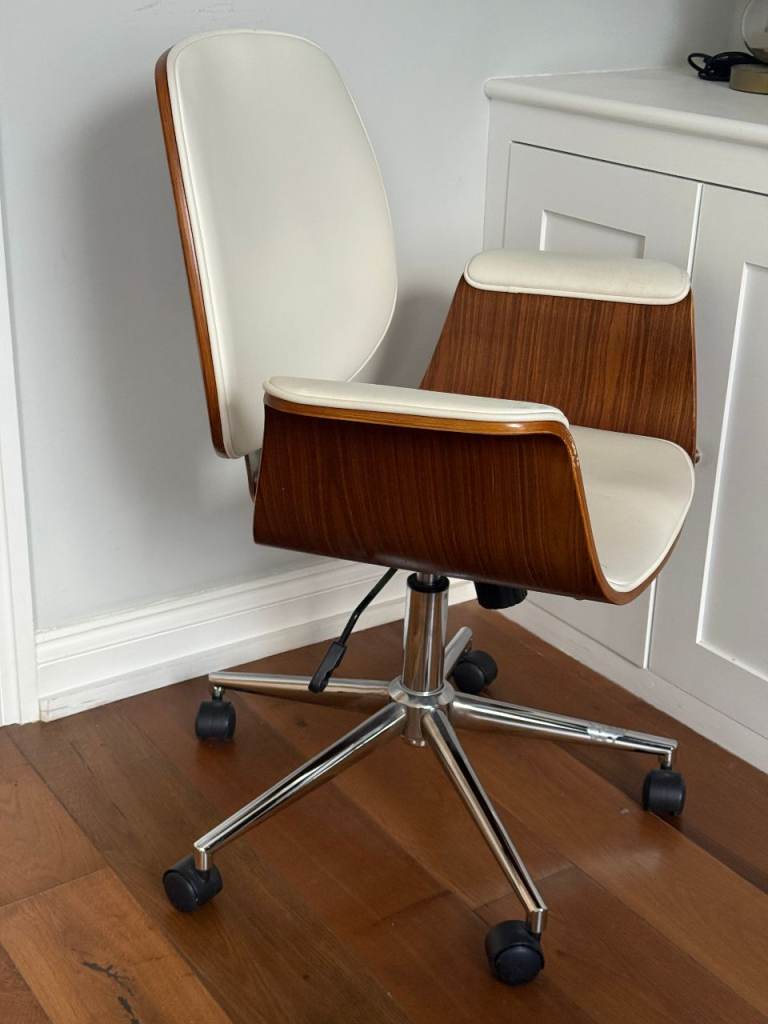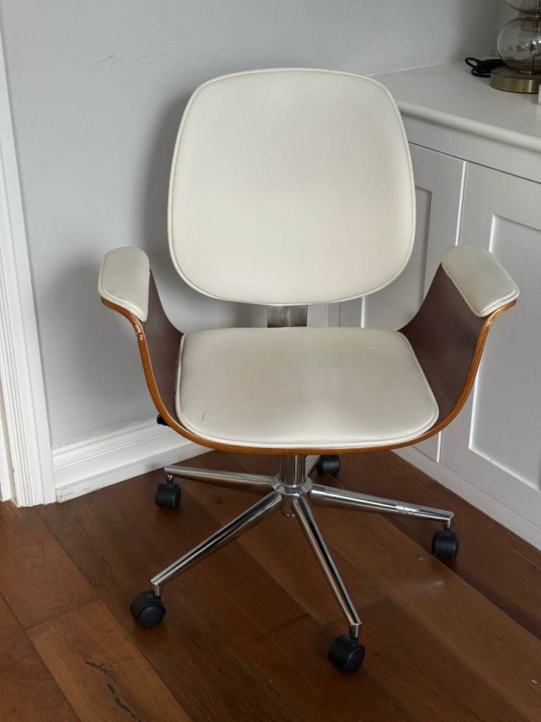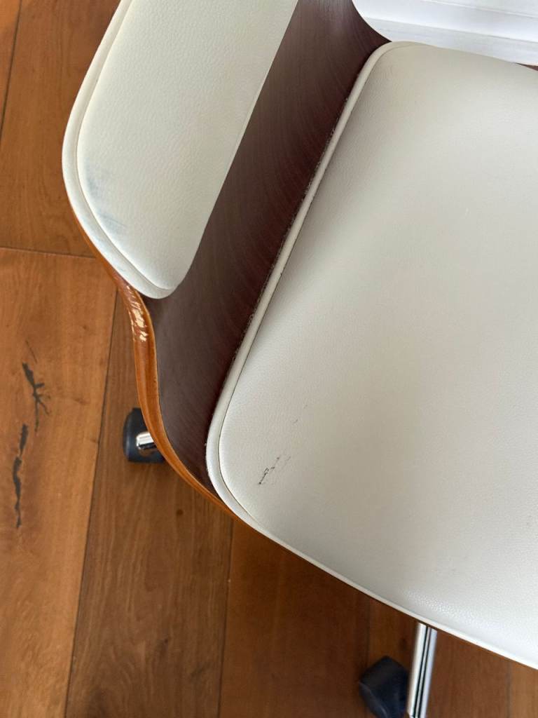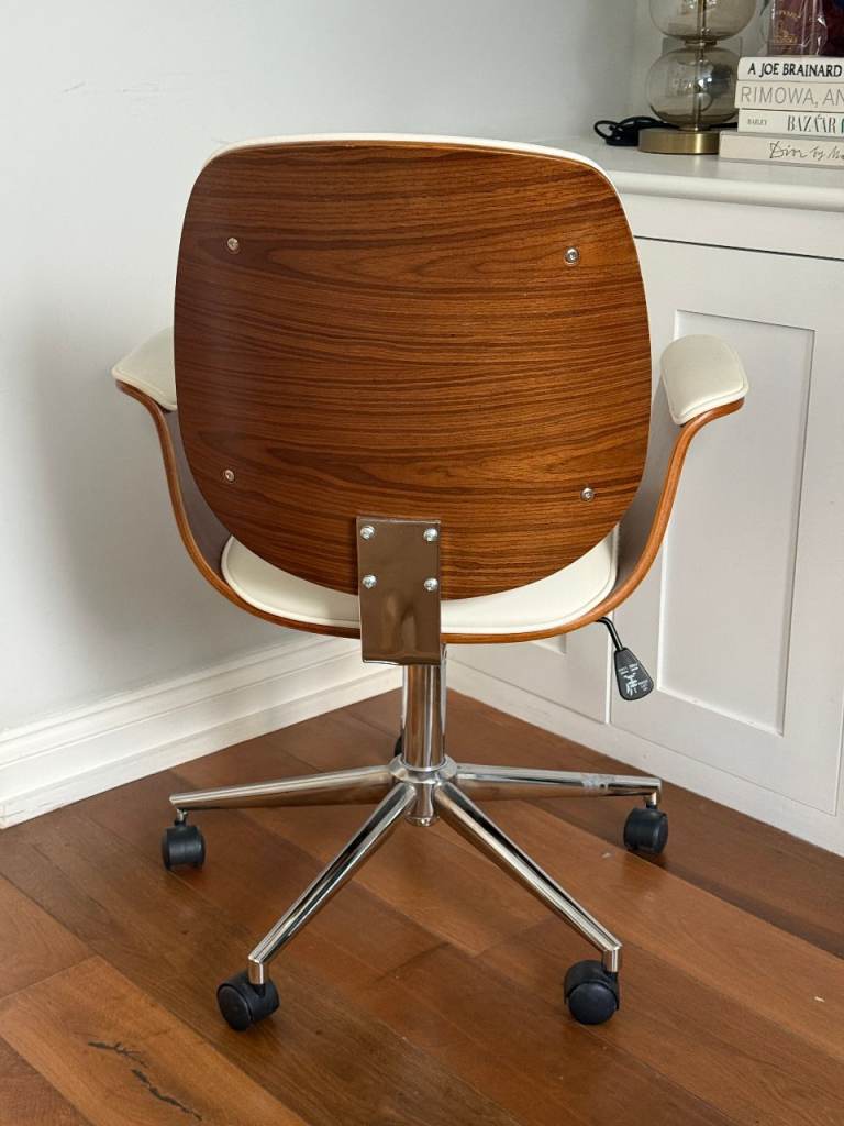 Posting for 4+ yearsWooden office chair with white leather