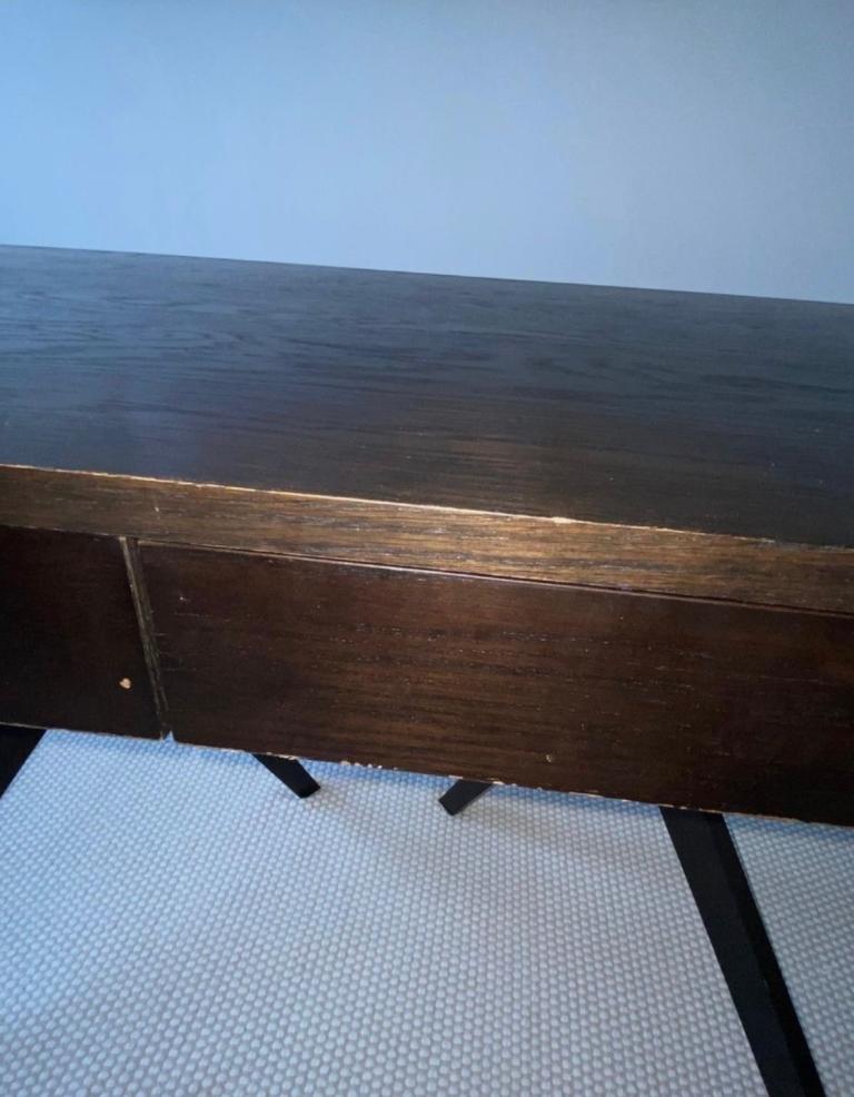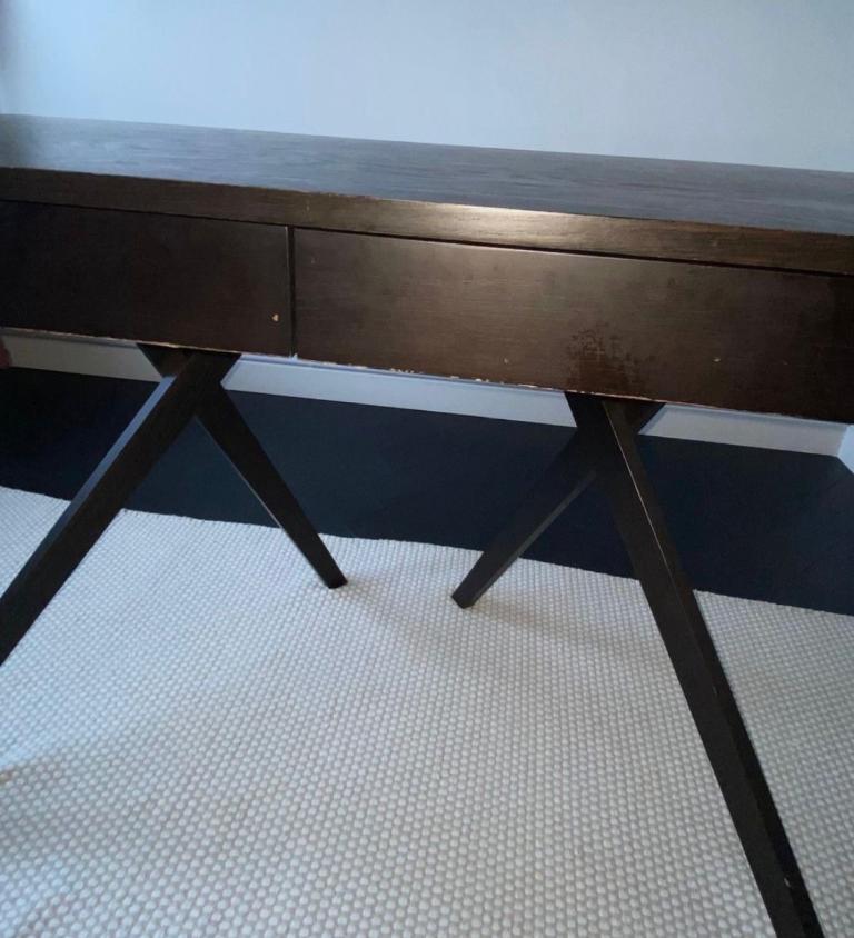 Brown/Black executive desk. 70cm height, 130cm length, 60 cm width.