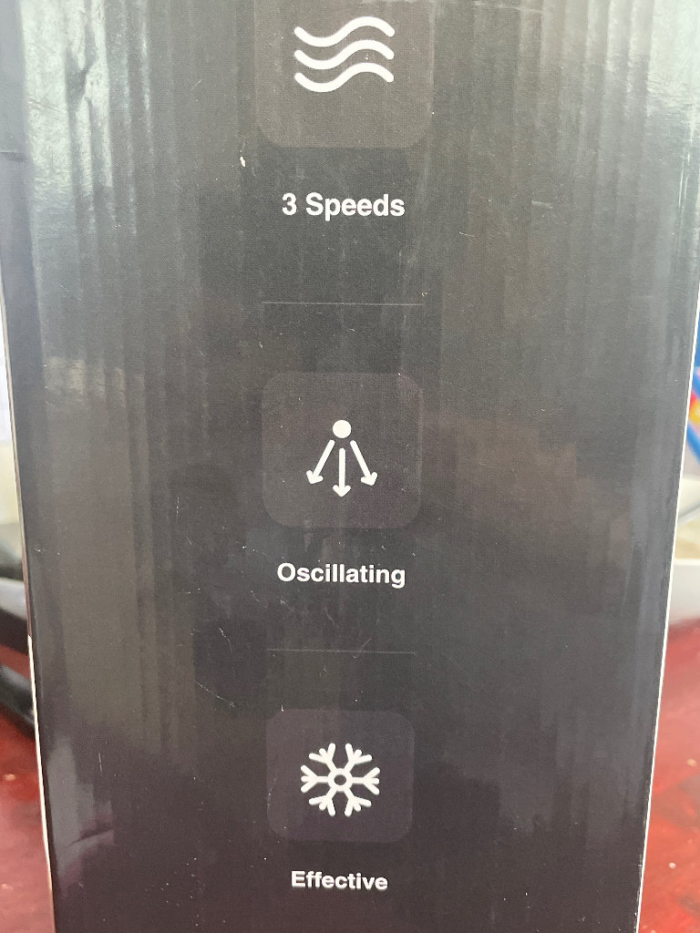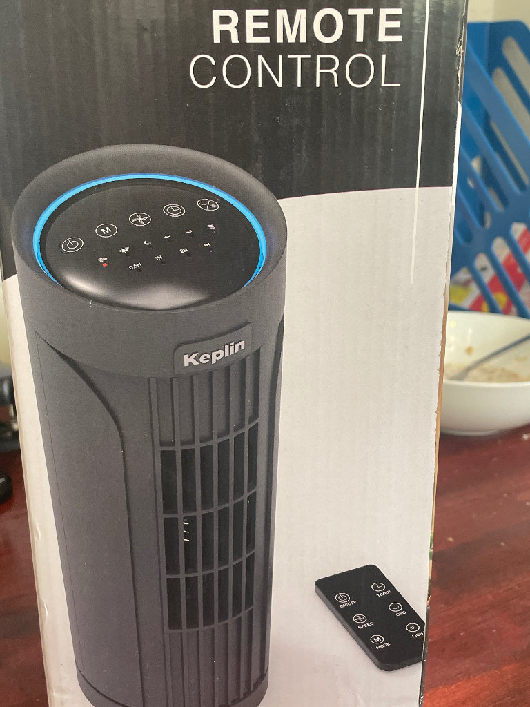 New in box mini fan in black with remote and lights, low sound