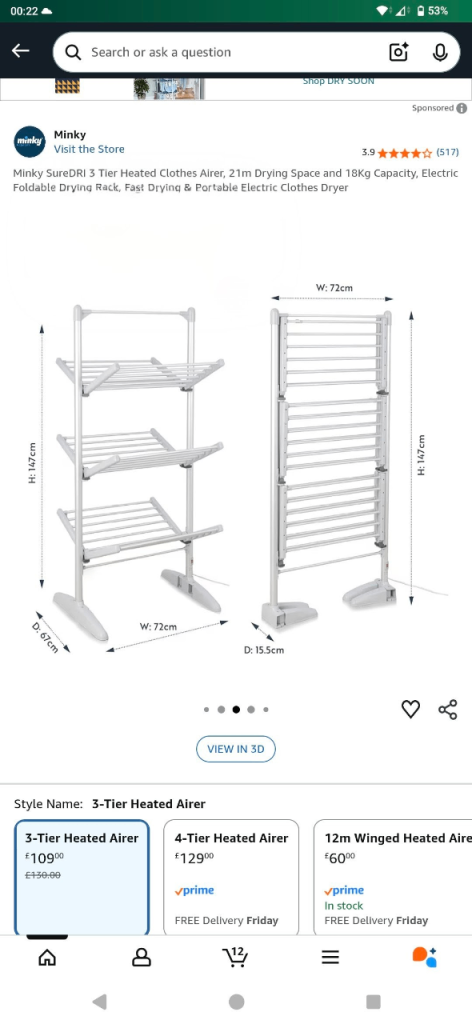 Goldair mini tower oscillating cooling fan, works fine, collect from Church Langley