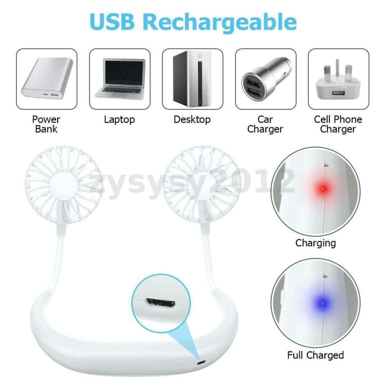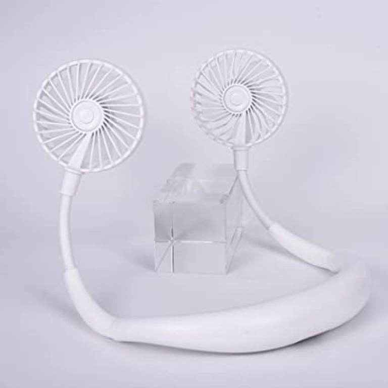 White USB Rechargeable Hands-Free Portable Dual Neck Fan Cooler