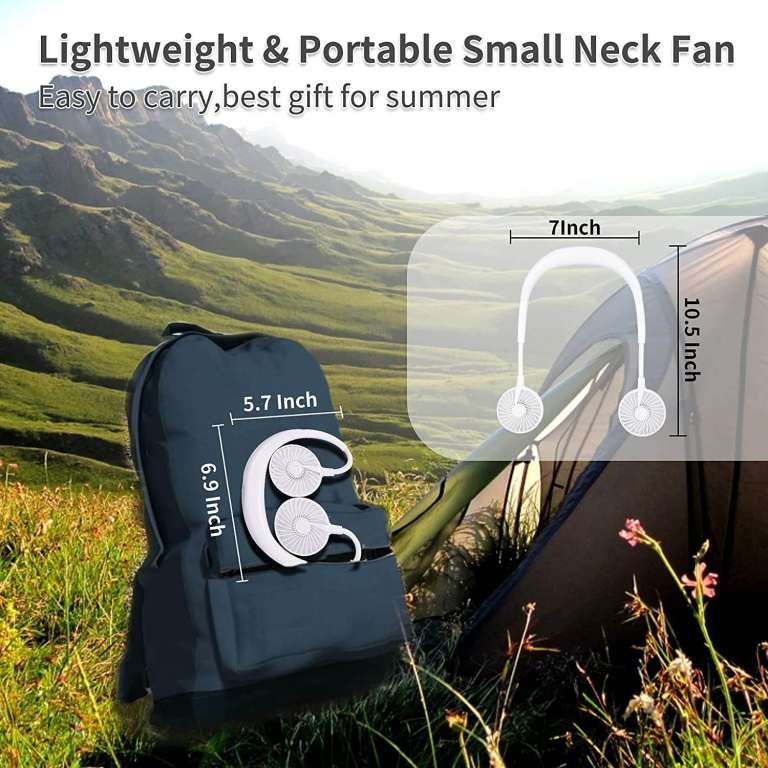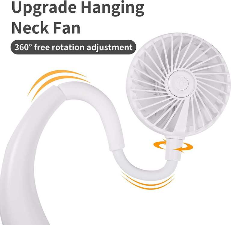 FREE YOUR HANDS & LIGHTWEIGHT: Do you hate holding a fan while walking in the hot summer? This Fan has a wearable design that can Free Your Hands. You only need to wear the neck fan around your neck to enjoy the cool wind from all around.
