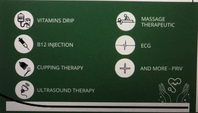 Vitamin Injections, Vitamin Infusions, Massages, Ultrasound therapy, ECG
