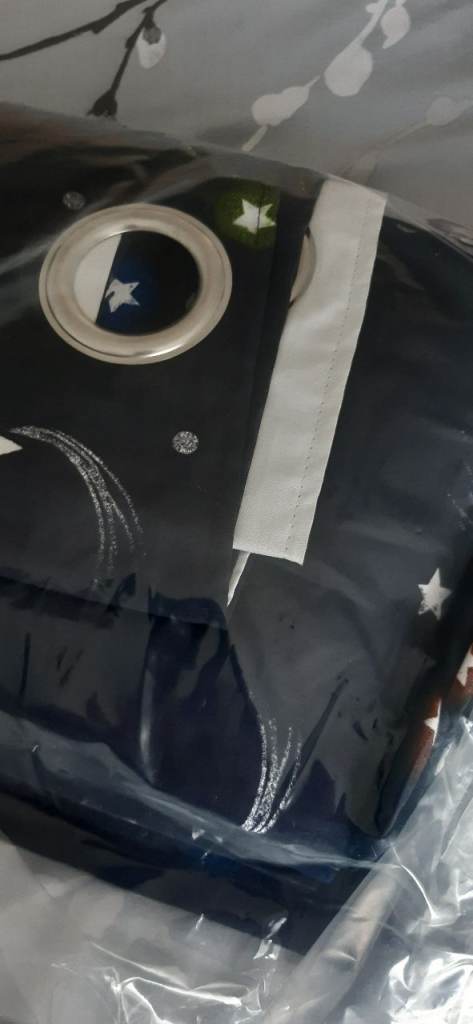 Space bedroom bundle. Space lined blackout eyelet curtains each curtain is d-183cms and w-163cms. Single duvet cover and matching pillowcase and glow in the dark lampshade. In good used condition. From smoke free home. £10 the whole lot. Collection from Henbury Bristol BS10 area.