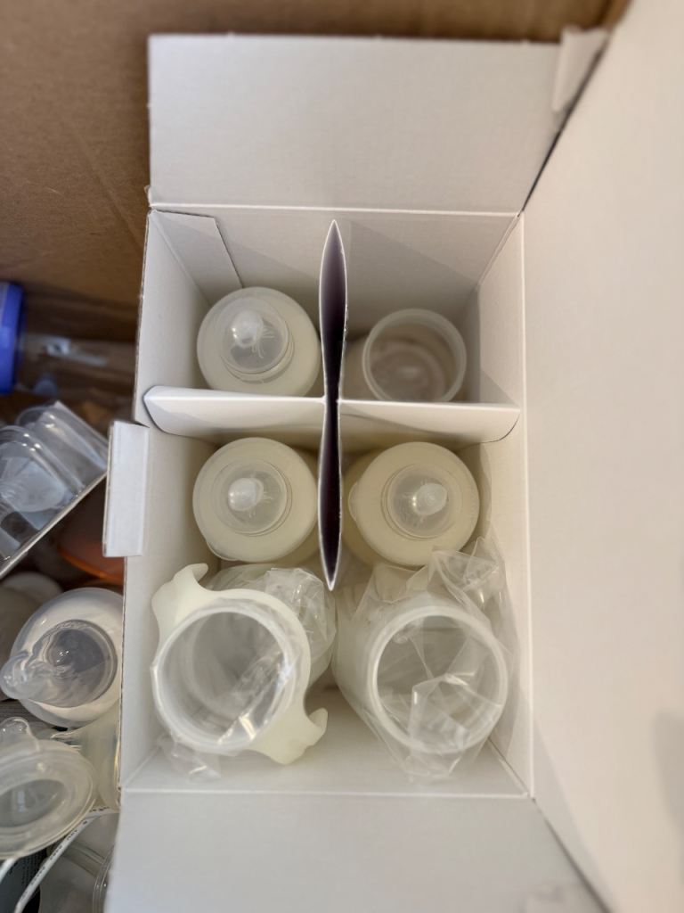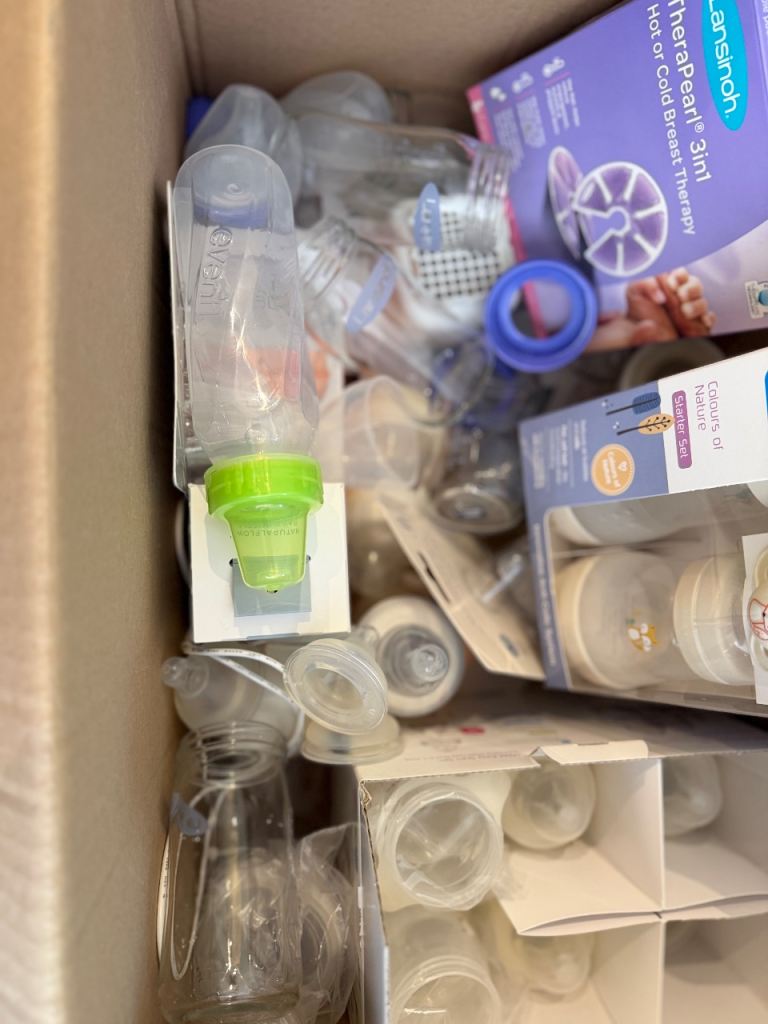 • various Lansinoh glass bottles — barely used, various teat sizes