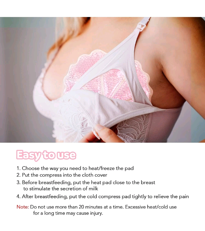 Functions : Lictin Breast Therapy Pad has two functions: cold application and hot application. Cold compress can help relieve pain and swelling caused by congestion and mastitis, and hot compress can help relieve mastitis, blocked ducts, and promote milk discharge.