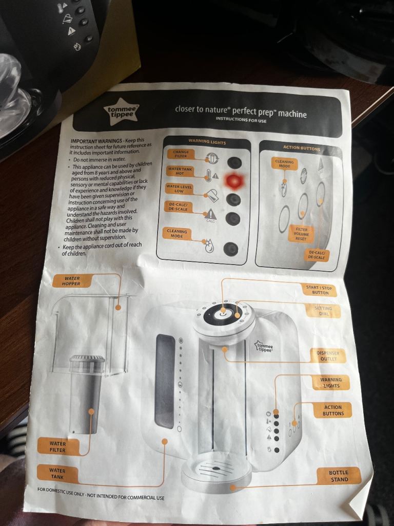 Perfect Prep machine for making up baby bottles. Comes with box and all important instructions!