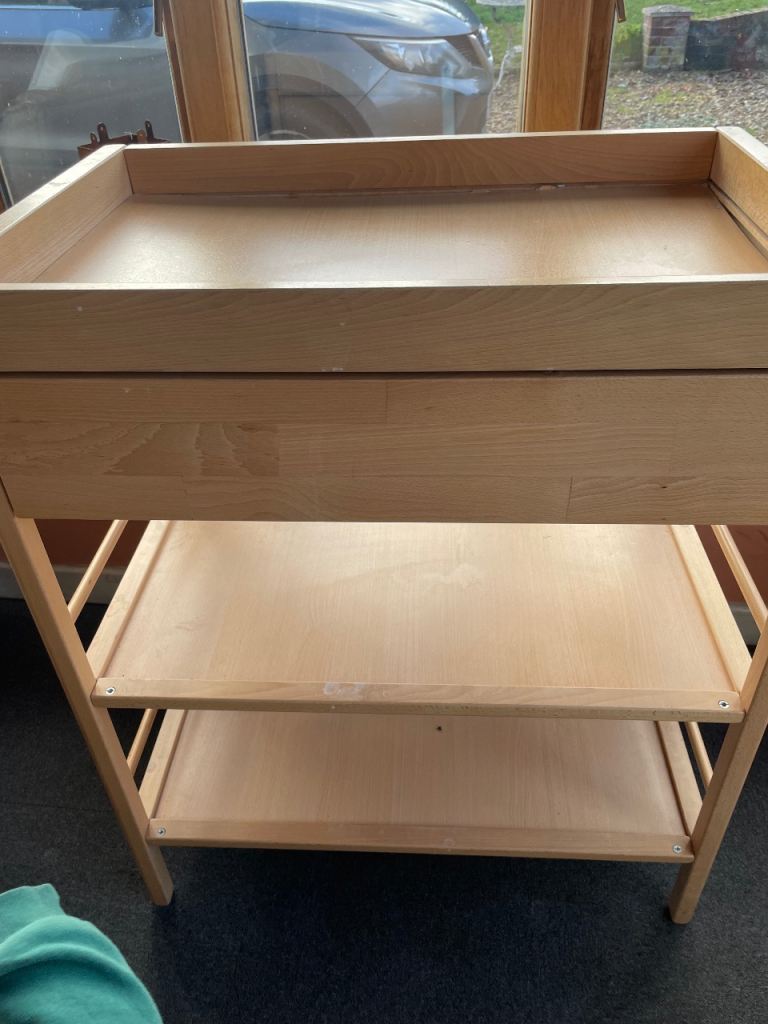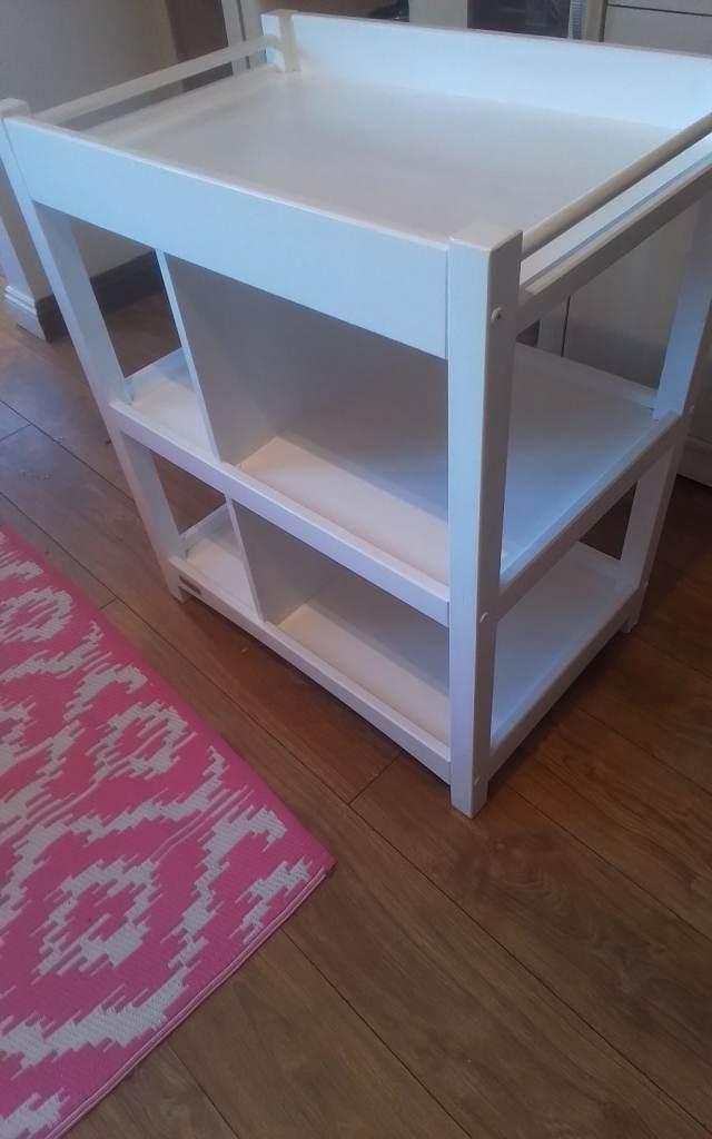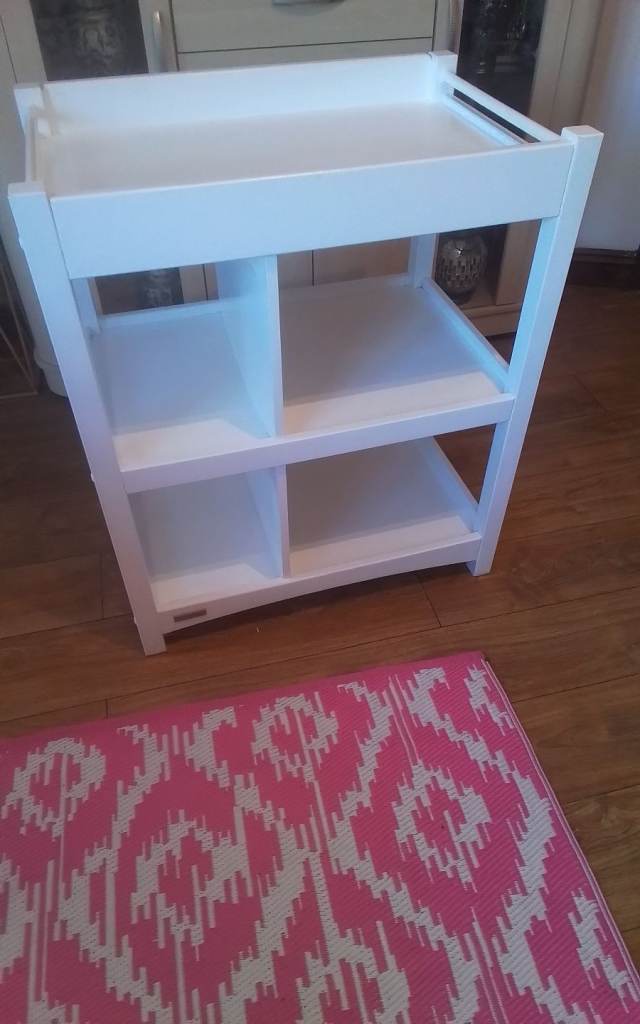 A lovely modern very good quality solid wood "MAMMAS AND PAPPAS " baby changing unit in very good clean condition, having 4 separate compartments a spacious changing top, and measuring 90cm tall x 75cm wide x 50cm deep, a very stylish quality unit, cash on collection from Wigan please or may be able to deliver for cost of fuel only thank you.