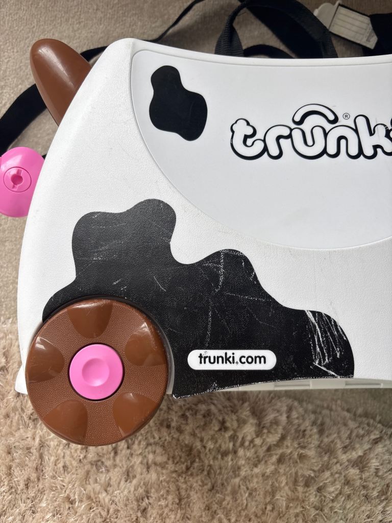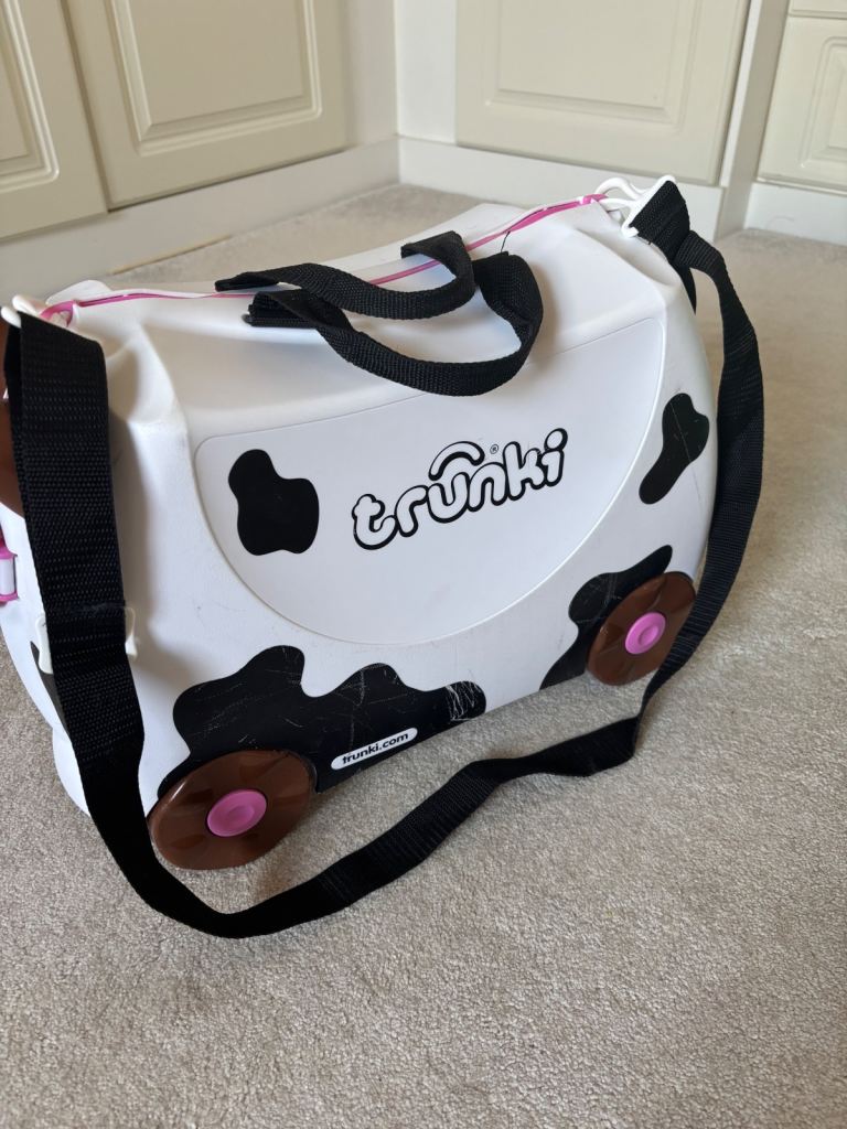 Posting for 4+ months2 x Trunkies (Cow and Unicorn). Ride on suitcase and hand luggage for kids