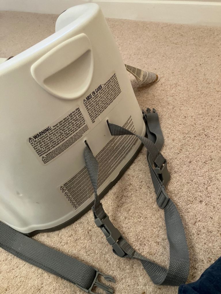 Bab=y seat, as new. Fits on any seat or stands on the floor, with inbuilt tray. A really useful piece of kit.