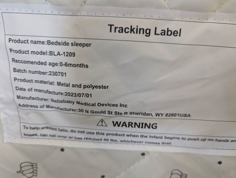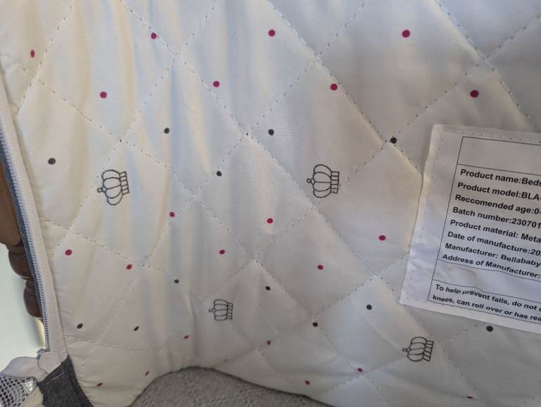 Bella baby crib, excellent condition. Was never used as it was too big for the space next to the bed in the end.