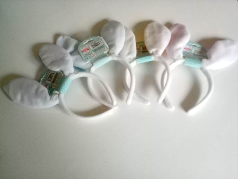 4 BUNNY HEADBANDS NEW. UNUSED. NOT SUITABLE FOR UNDER 3 YEARS AGE