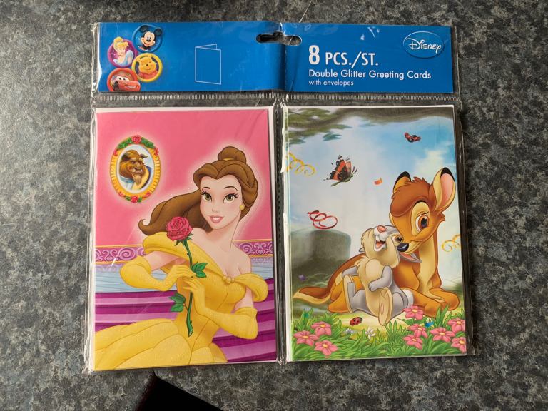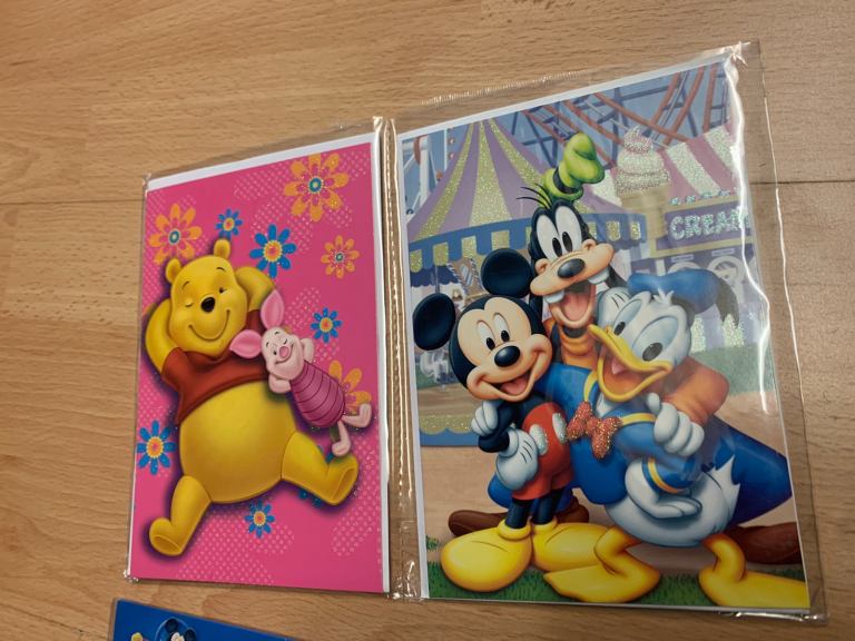 Disney birthday or can be used for any occasion cards, 12 cards in total with different Disney characters in new condition, beautiful collection