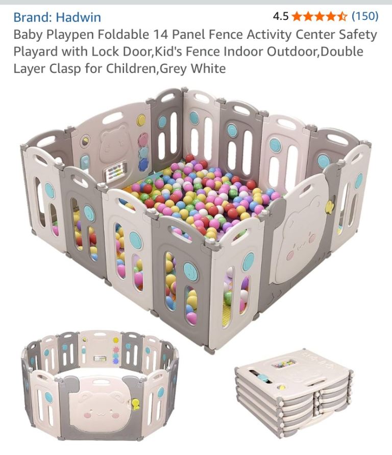 Hadwin Grey and Beige Foldable Playpen - 14 Panels