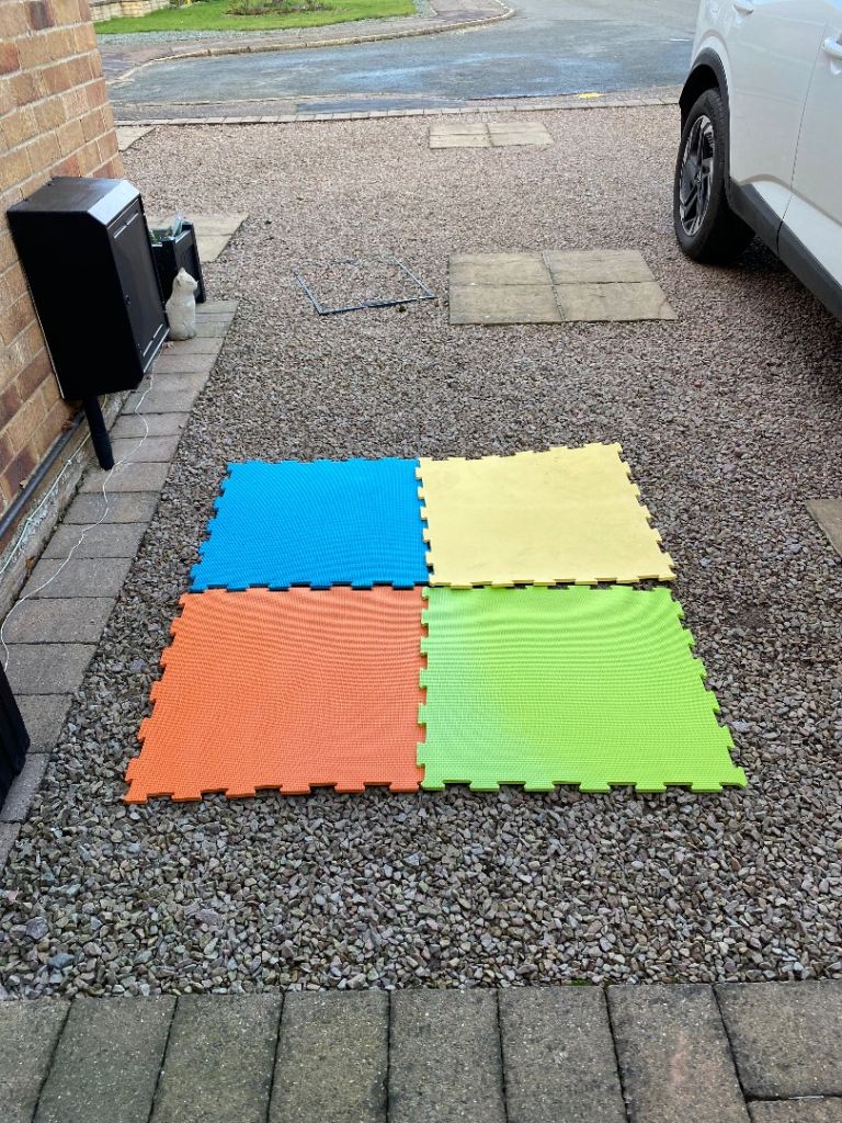 16 four colour interlocking good condition foam playmats. Bought to use indoors to protect new carpet when we had young grandchildren.