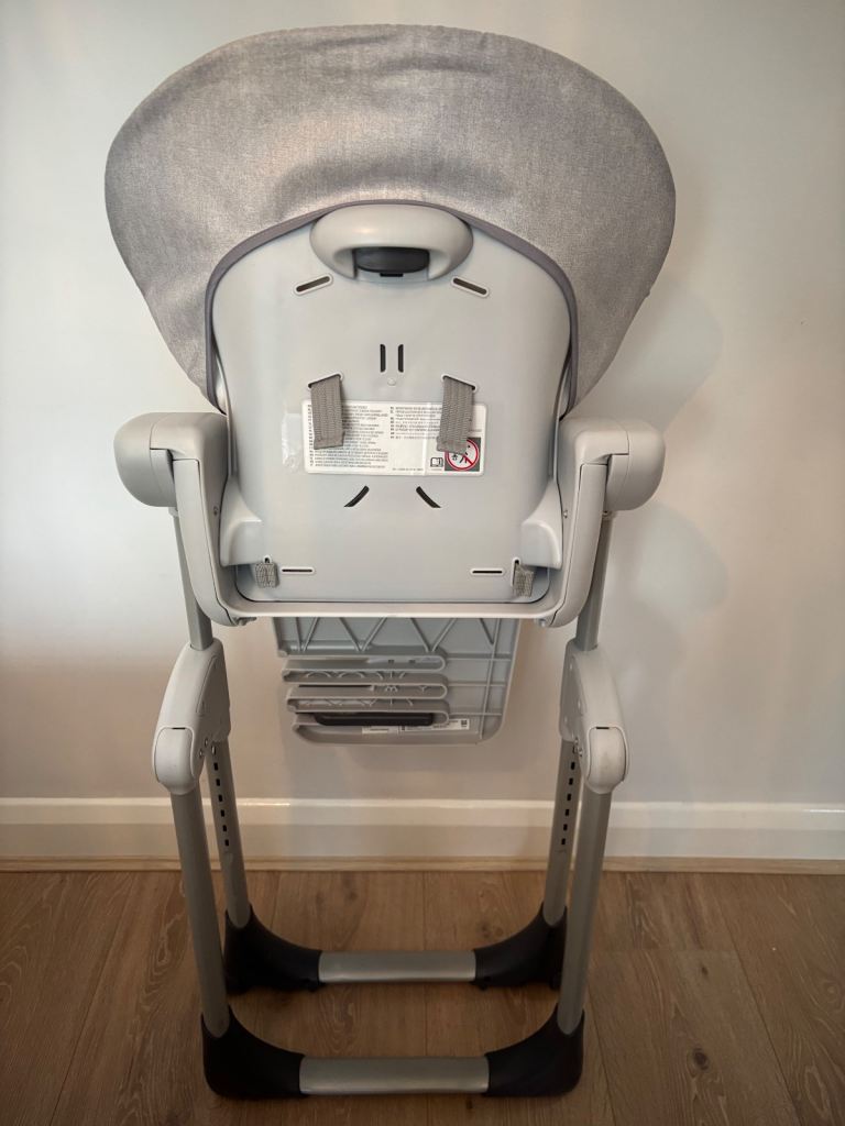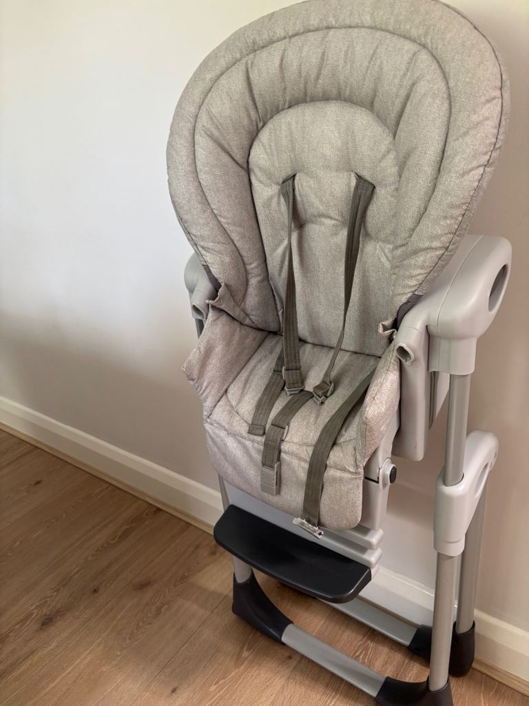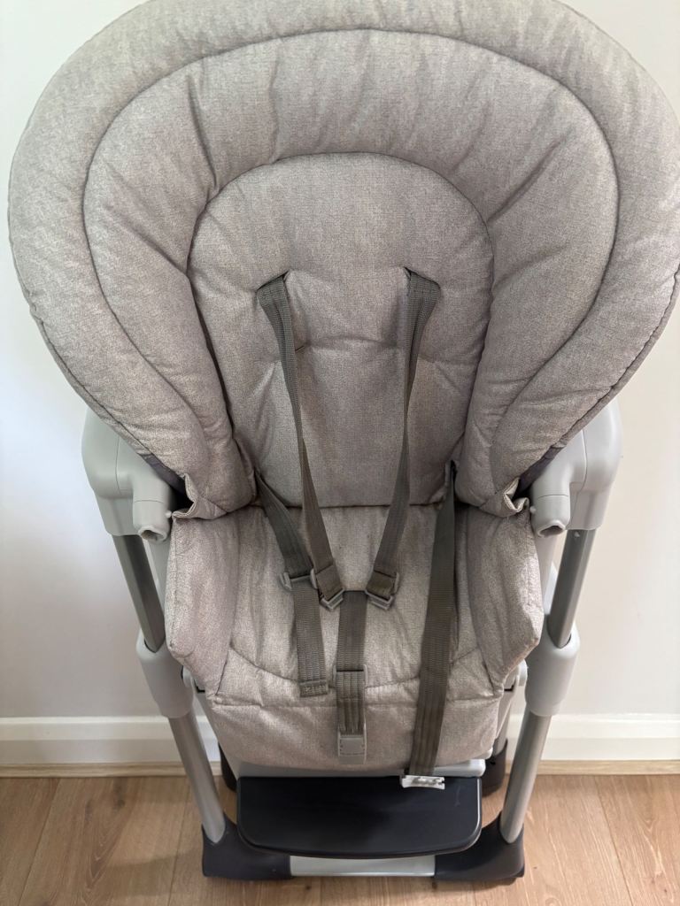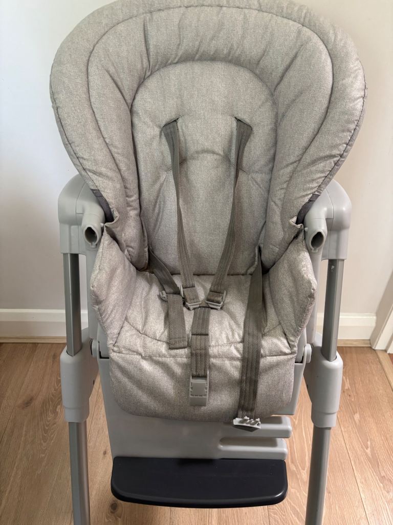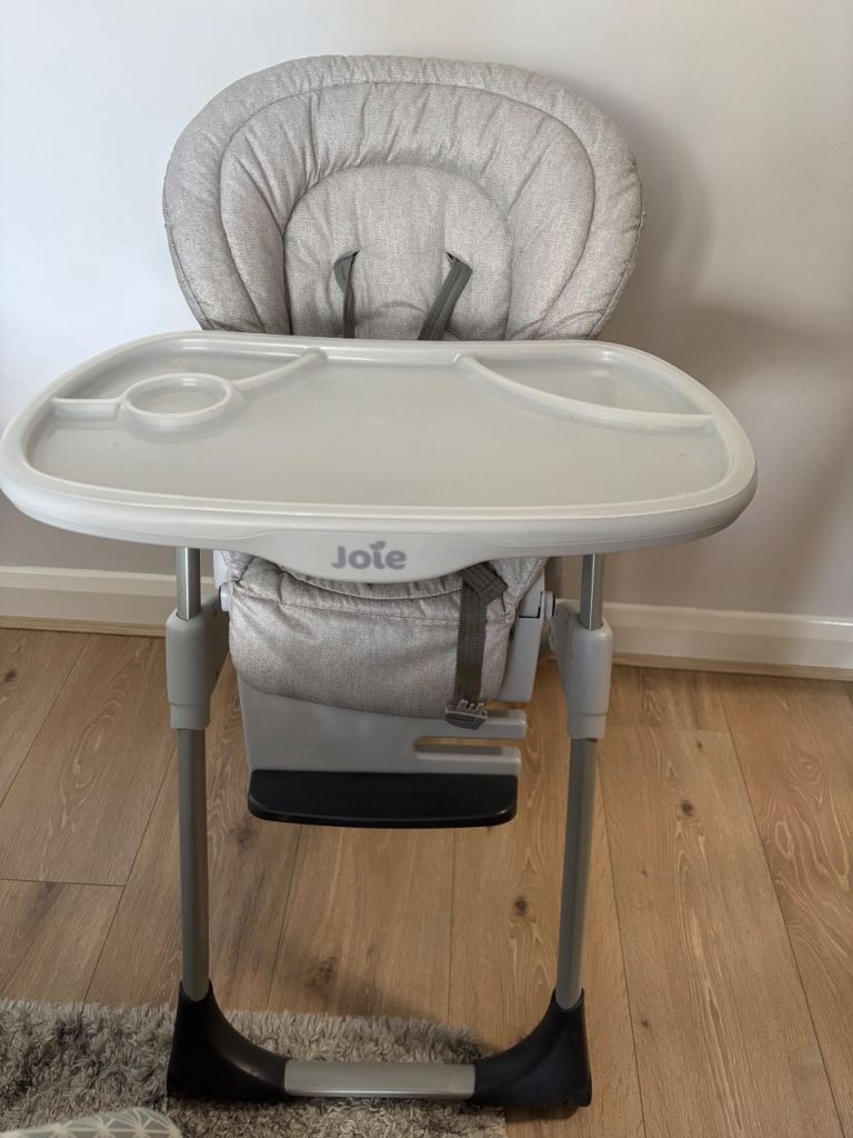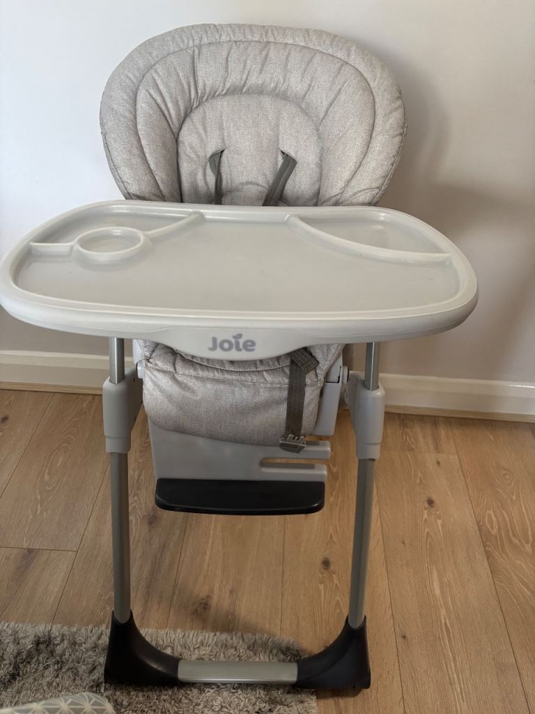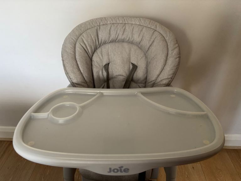 The Joie highchair in grey is a sleek and stylish option for parents looking to feed their baby comfortably. With its attachable tray, it offers convenience and functionality, making meal times simple and hassle-free. The Joie brand is known for its quality baby products, ensuring safety and durability in this essential item.