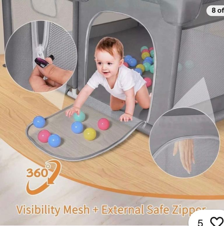 360 ° full visual design: The baby fence can be folded and designed with high-density, ventilated, and ventilated mesh walls. Provide a 360 degree viewing area for you and your baby, allowing mothers to keep track of their baby's status at any time. The external zipper design prevents the baby from pulling the zipper out of the wound. Parents can free their hands to do their own things.