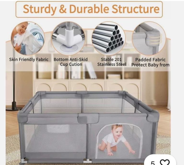 Safety and stability: The baby fence is made of durable Oxford material and sturdy tubular steel. The anti slip base is a newly upgraded and thicker suction cup that still shakes.The limbs are wrapped with a thick foam sponge to prevent the child from hitting his head when playing. Added handles that can hang objects or children can learn to pull themselves up.