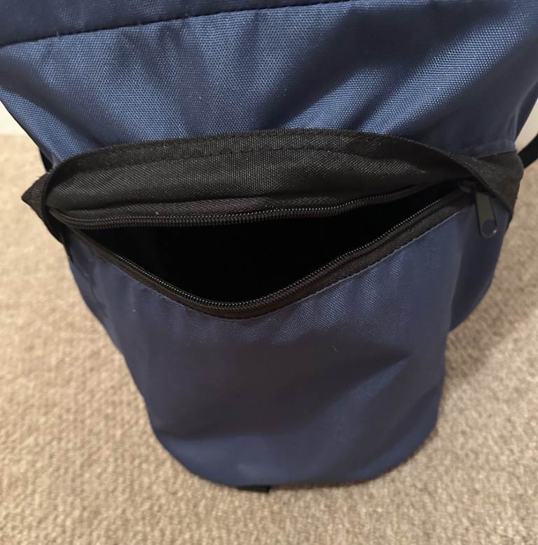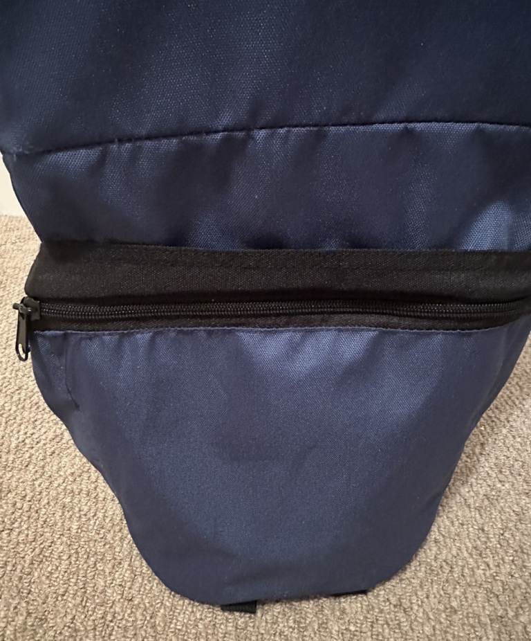 Has mesh pockets for bottles/small items, large zipped section at the base for larger items such as baby changing gear, clothes, and so on. Padding at rear, extra padding at lower back, padded straps and of course padded seat/straps for the little one. Has a detachable sun hood/visor and whole unit is kept sturdy with solid frame within the fabric. Fabric is strong and durable. No damage/wear to the carrier so is very secure and safe.