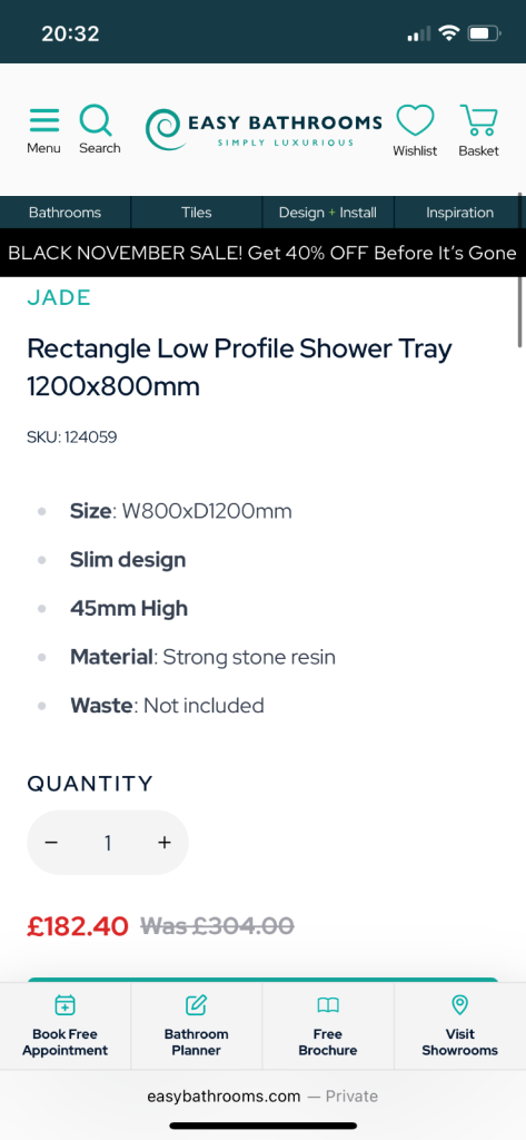 1200x800 stone resin shower tray