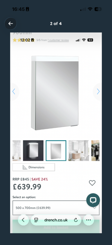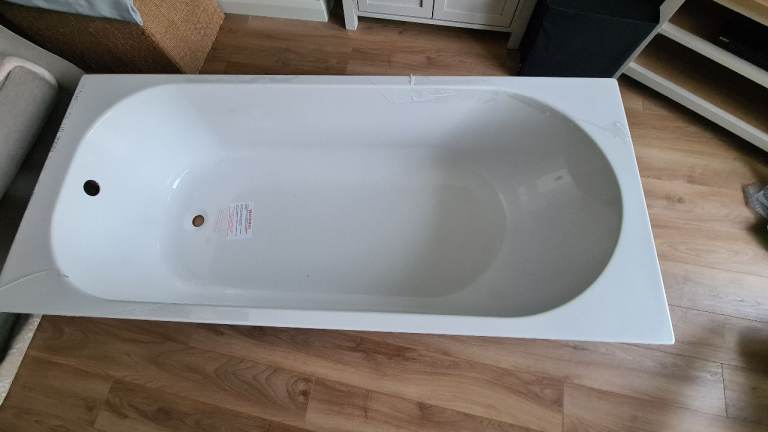 Arnold reinforced acrylic 680 x 750 This is a brand new bath ( plastic protection still in place) but it has damage at one end - a large chip but will be hidden when bath fitted. It also has a surface crack near the head end but is close to the top so above water line. Apart from that it's perfect!