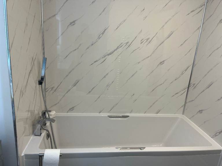 Luxurious white Carrara marble effect with detailed grey veining - Suitable for interior walls, specifically shower areas - Rigid, waterproof PVC construction - Shining gloss surface finish - Versatile 2400x1000mm format with 10mm thickness - Easy to install tongue and groove design - Mould-resistant and easy to clean - Honeycomb structure for improved moisture resistance