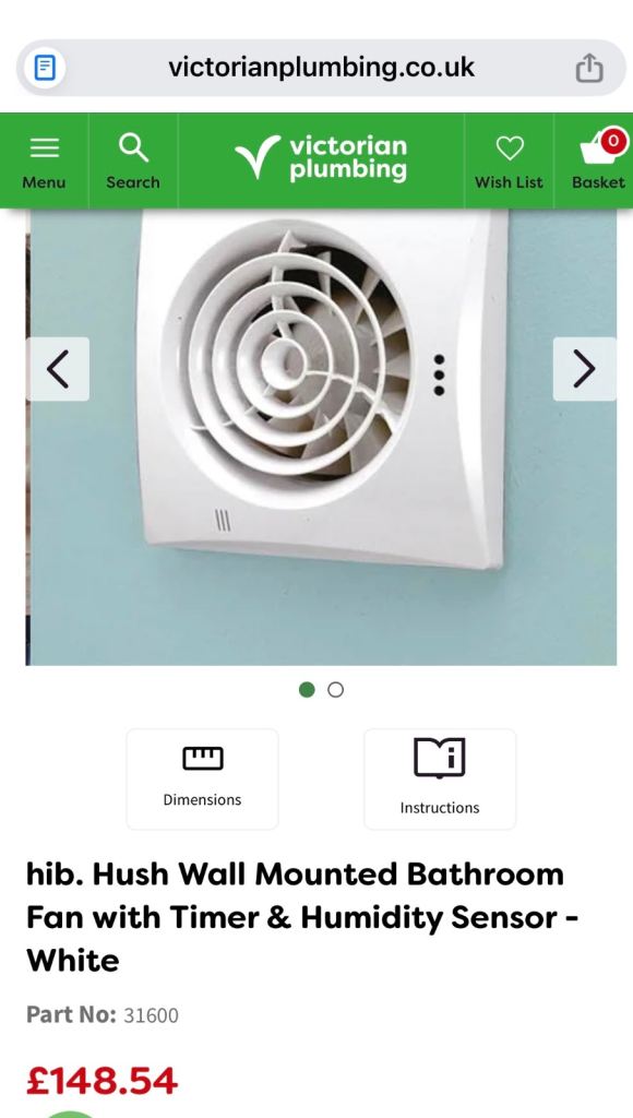 HiB Hush bathroom fan White Part No:31600