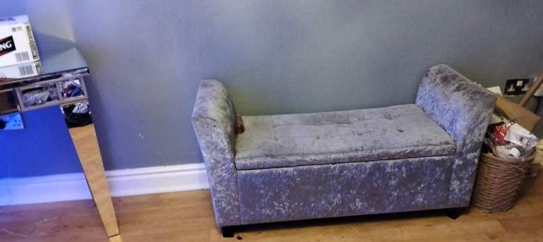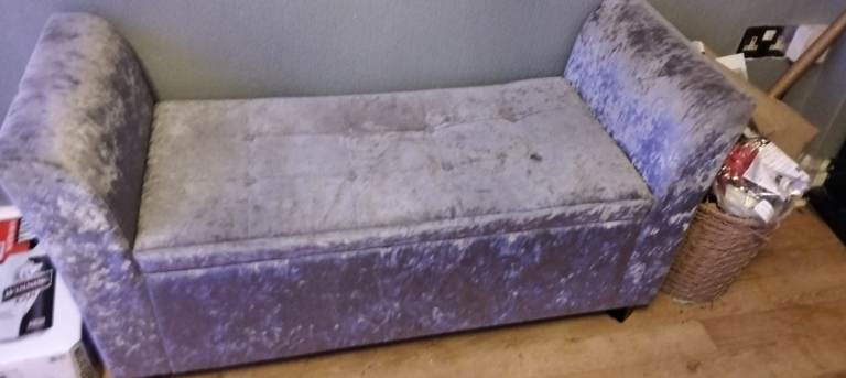 BEAUTIFUL SILVER VELVET OTTAMAN