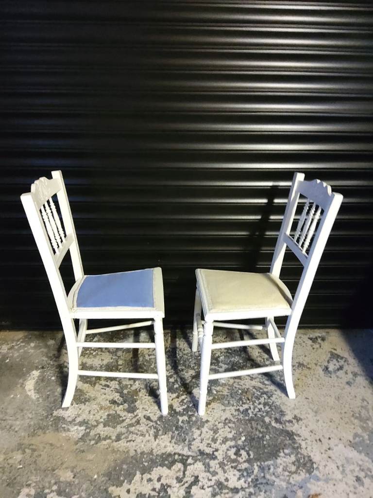 2 Small Wooden Antique Bedroom Chairs. Painted white but originally mahogany and could be restored to original.