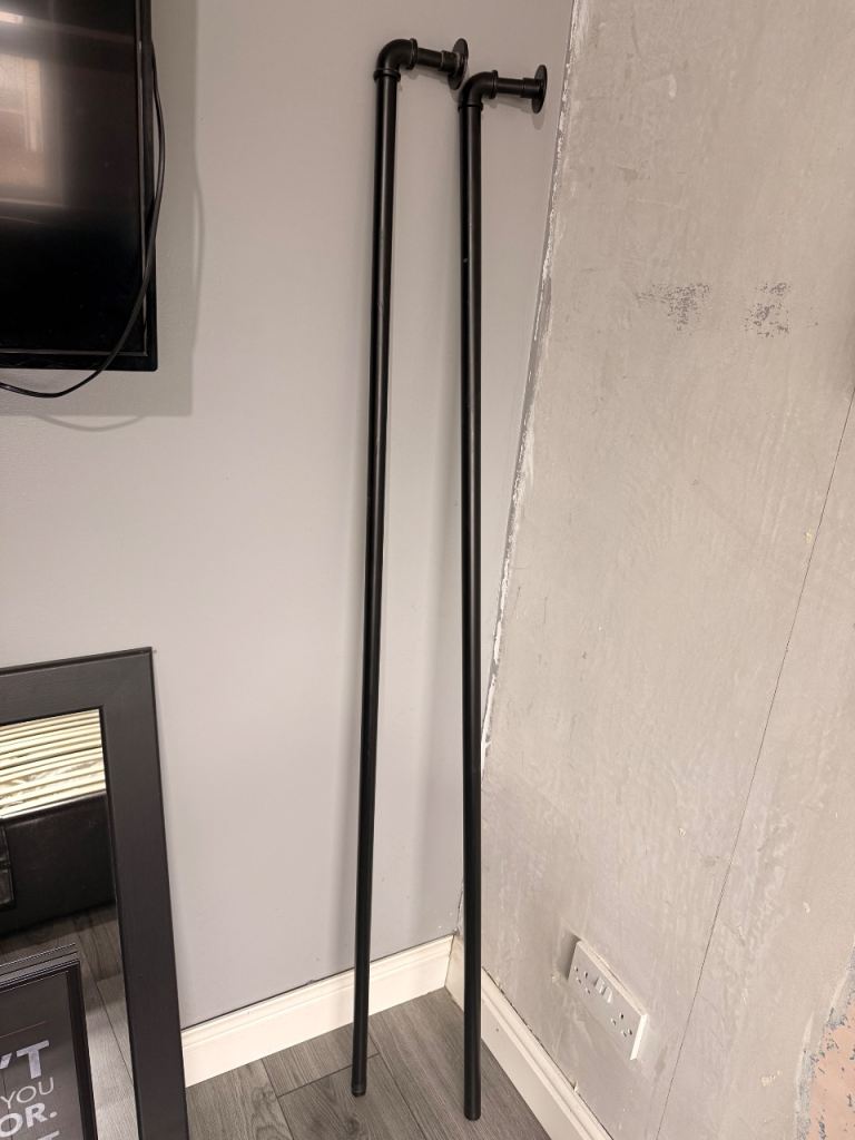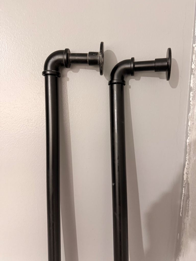 Black industrial style pipe curtain pole